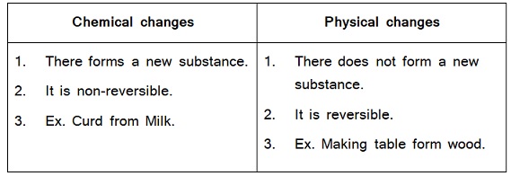 Ans. – Chemical change is the change in which there forms a new substance. Setting of curd is a new substance which is non reversible.